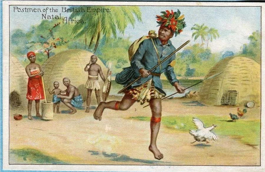 Natal Post runner depicted on one of a series of postcards: Postmen of the British Empire